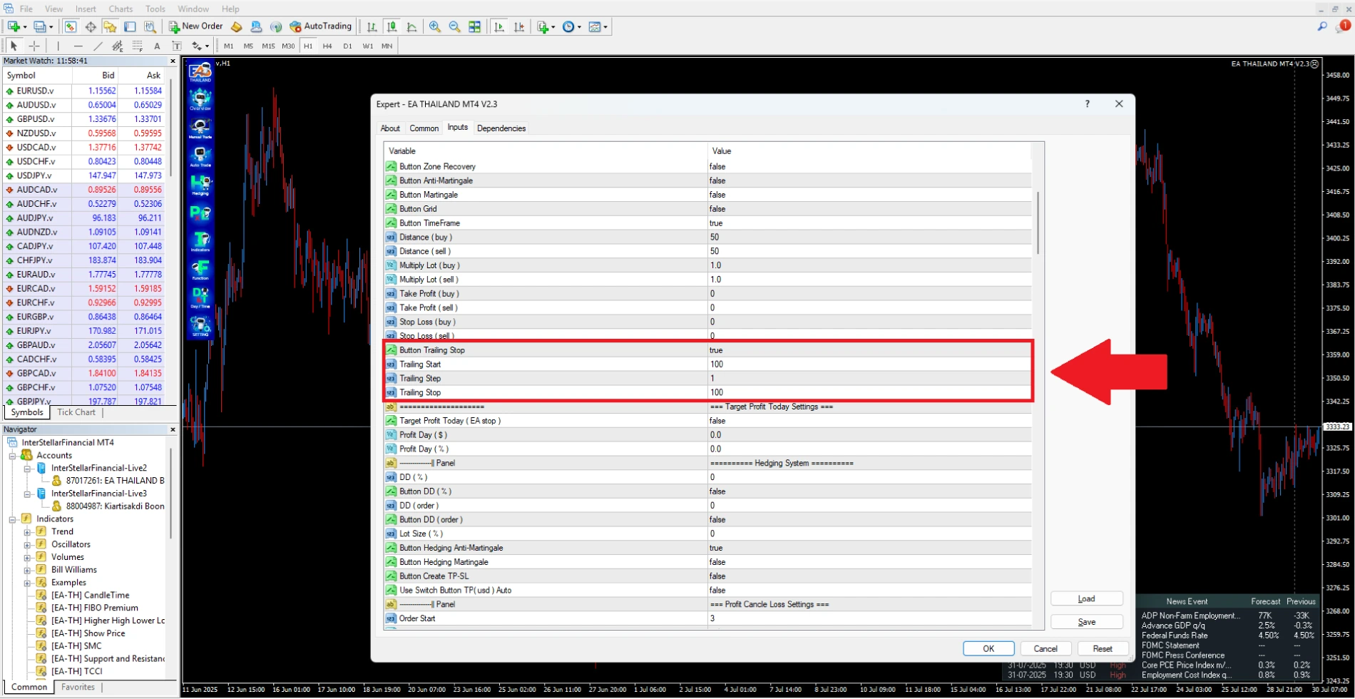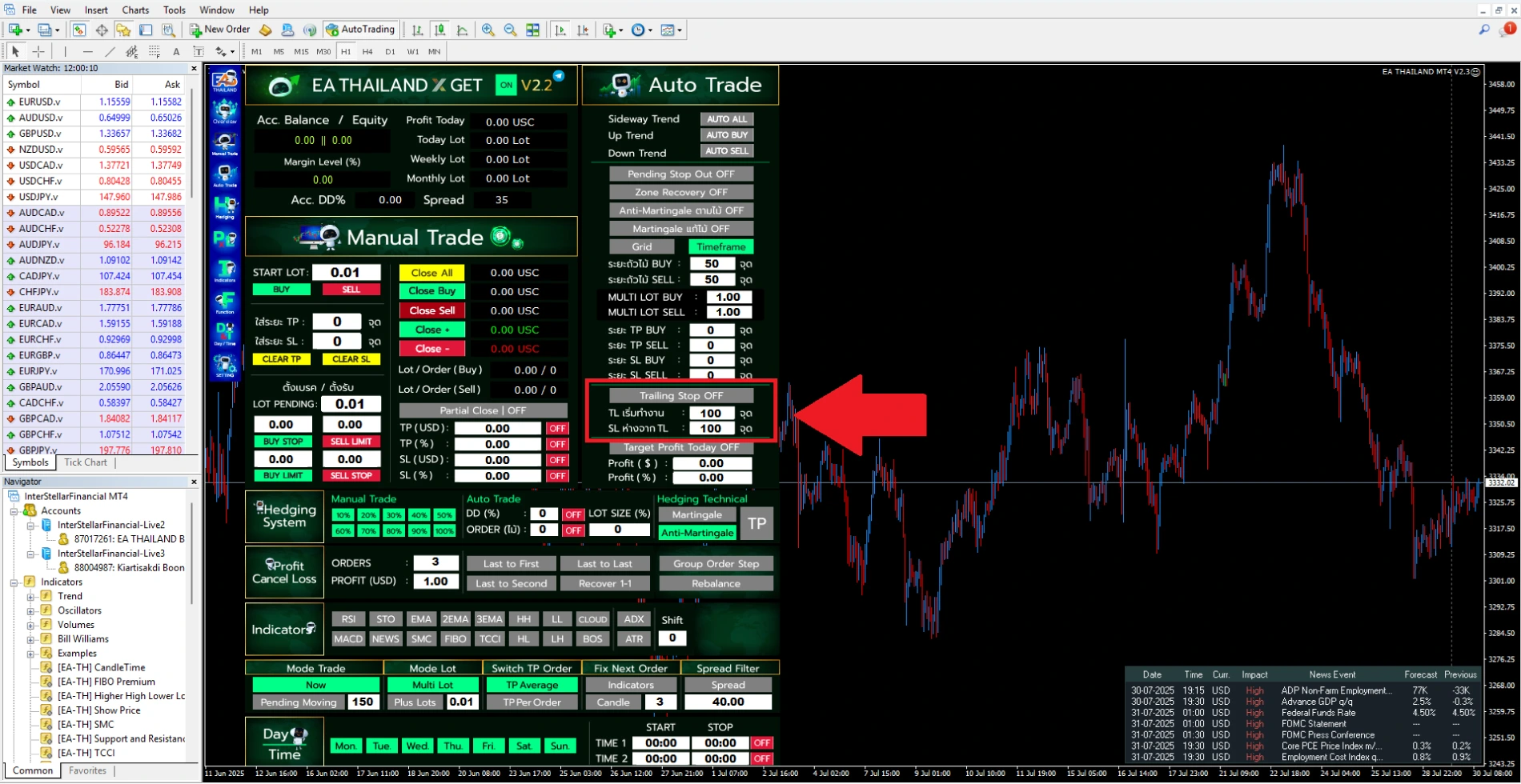 โดยการตั้งค่าในส่วนของการใช้งาน Trailing Stop จะมีอยู่ด้วยกัน 4 ส่วนดังนี้